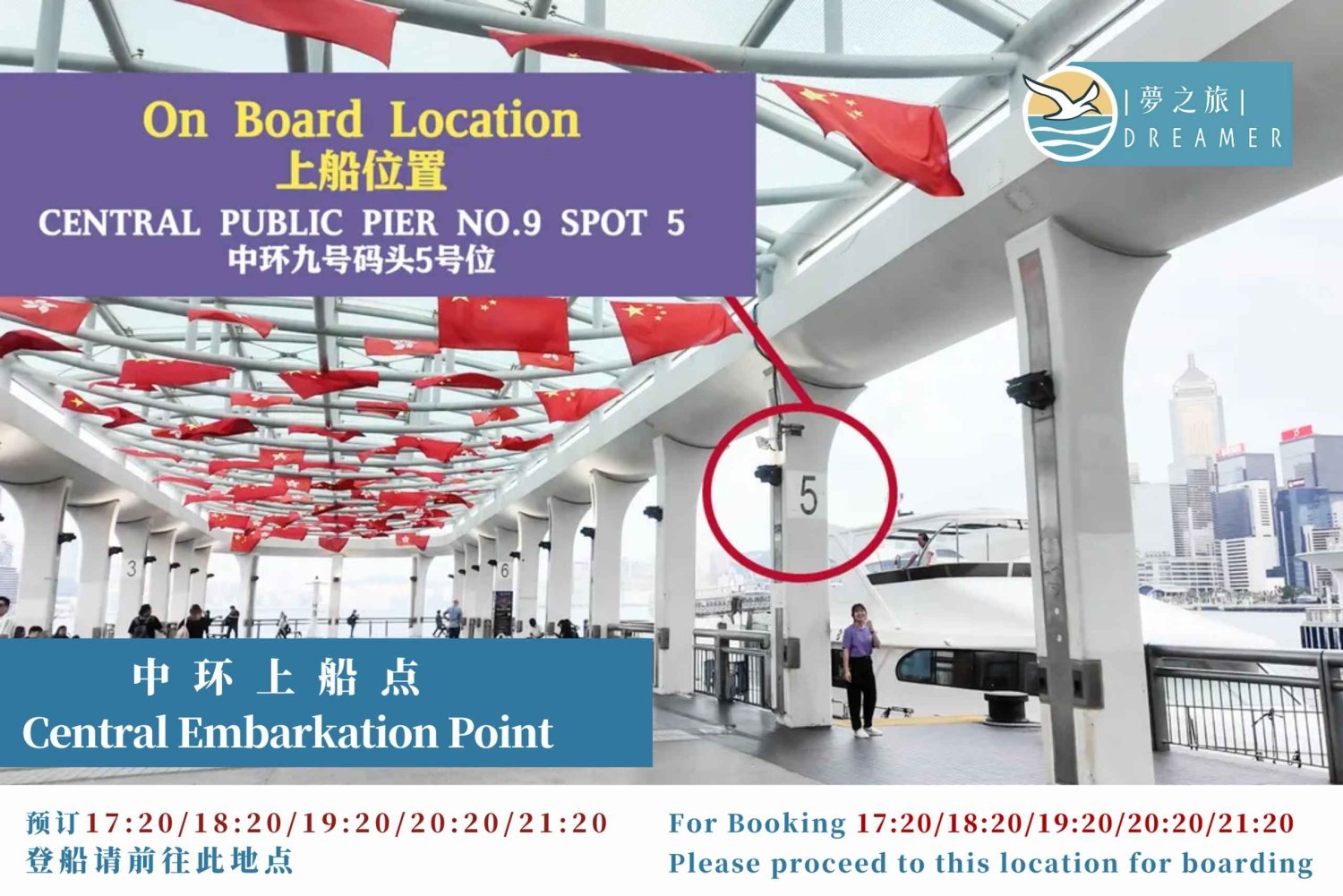 香港港は、尖沙咀プロムナード、アベニュー オブ スターズ、ビクトリア ピーク、セントラル プラザなど、さまざまな観光スポットに近いこと、また香港文化センターの外にある尖沙咀ウォーターフロント以外ではシンフォニー オブ ライツを鑑賞するのに最適な場所であることから、香港で最も人気のあるアトラクションの 1 つになりました。 豪華なヨットに乗って壮大なビクトリア ハーバーを 45 分間クルーズするのは、まさに息をのむような体験です。世界で最も壮観な港を巡り、シンフォニー オブ ライツ ショーをお楽しみください。 旅行中は、無制限のビール、ドリンク、スナックを楽しみ、香港の素晴らしいスカイラインを満喫できます。デッキに座って、香港のビクトリア ハーバーを航海しながら、友人や家族と一緒にくつろぎましょう。 Dreamer’s Night Curise では、旅行者に豪華な西洋風のヨットに乗る機会を提供しています。最上階にあるオープンエアのフライブリッジからは 360 度のパノラマビューをお楽しみいただけます。快適なソファがあり、素敵な自撮り写真を撮るのに最適な場所です。豪華に装飾された内部ホールにはエアコンも完備されており、涼みながらドリンクをお楽しみいただけます。船内には独立したバスルームが 2 つあります。Includes