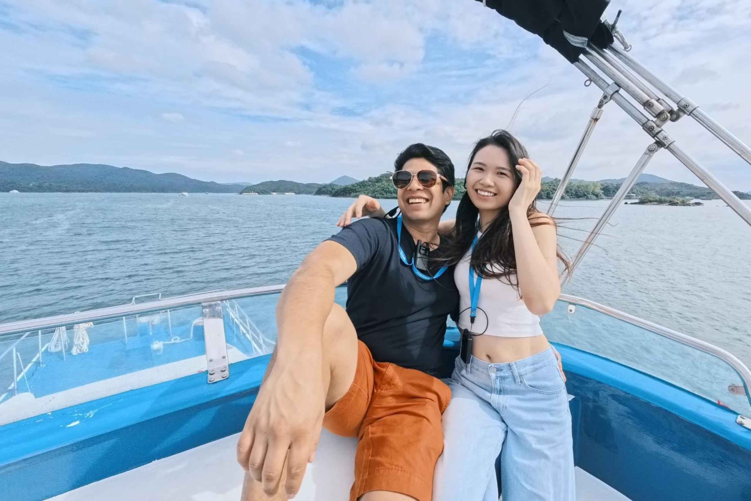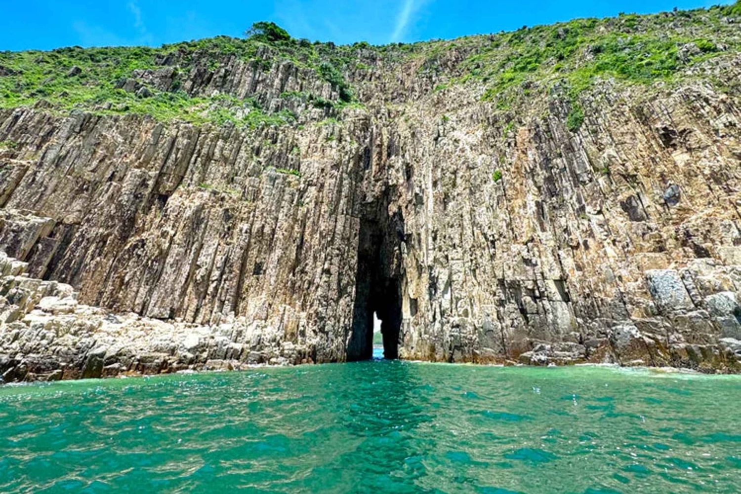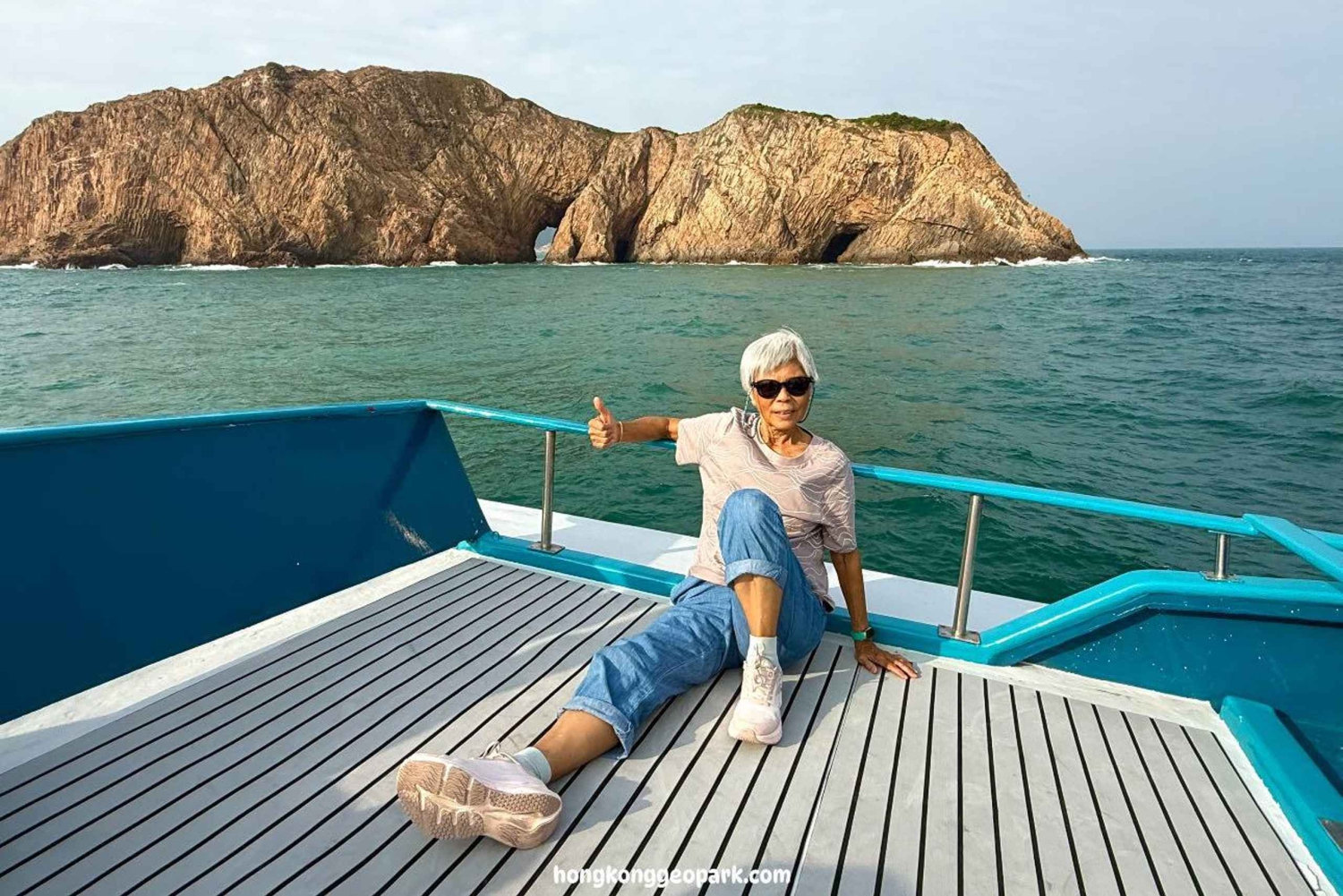 Wskocz na jacht w Sai Kung New Public Pier i ruszaj na 4-godzinną przygodę przez Hong Kong UNESCO Global Geopark. Podziwiaj największe na świecie sześciokątne kolumny wulkaniczne i cztery największe łuki morskie na Morzach Wschodnich. Odwiedź Jaskinię Małego Tajwanu w Wang Chau, łuk morski przypominający kształt Tajwanu, oraz Pałac Morski, 300-metrowy klif wykonany z sześciokątnych kolumn z wulkanicznej skały. Jedź dalej do jaskini Guandao na wyspie Basalt, największego łuku morskiego w Hongkongu, i jaskini Sea Tunnel na wyspie Bluff, która jest długa na 30 metrów. Podziwiaj Klif Modlących się Rąk, geologiczny cud z unikalnymi formacjami wulkanicznymi. Odkryj Jaskinię Dzwonów na wyspie Jin, Jaskinię Słoniowej Trąby na wyspie Sharp i Robot Rock. Spaceruj po Pineapple Bun Rock na Sharp Island i Angel's Road, naturalnej ławicy, która pojawia się podczas odpływu. Ciesz się krystalicznie czystymi, błękitnymi wodami i oszałamiającym zachodem słońca na pokładzie jachtu, z panoramą horyzontu, spokojnym morzem i rozświetlonym niebem.Includes