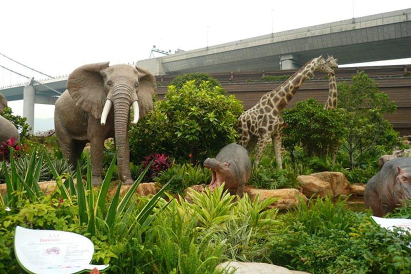 Ark Garden - features sculptures of endangered animals, trivia about select animals, a pretense of waterfalls and ponds